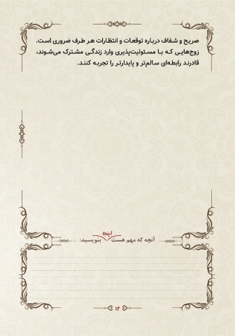 .تــسا یرورض فرــط رــه تاراــظتنا و تاــعقوت هراــبرد فافــش و حــیرص ،دنوــش یم کرتــشم یــگدنز دراو یریذپ تیلوئــسم اــب هــک یــیاه جوز .دــننک هــبرجت ار رــترادیاپ و رت ملاــس یا هــطبار دــنرداق اجنیا :دیسیونب تسه مهم هک هچنآ 12
